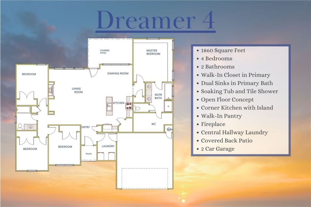 Pick your Colors, Options & Upgrades for a limited time! Schedule a Design Session with the List Agent at our Showroom. This new home is based on the Dreamer 4 Bedroom plan. Discover this stylish 4-bedroom home offering comfort, space, and modern design. The cozy living room with a fireplace flows into a spacious dining area, perfect for everyday meals or entertaining. Enjoy a modern kitchen with ample counter space and a versatile office/pantry area. The primary suite features an ensuite bath with a walk-in shower, while three additional bedrooms share a full bath. Relax on the covered patio or porch, and enjoy the convenience of a main-level laundry room and a garage with extra storage. Located close to Ward Nail Park, with quick access to all of NWA along Old Wire Road, this home has a very convenient location. A great opportunity to own a beautiful new construction home in one of Northwest Arkansas' fastest-growing communities. Builder's credit of $3,000 and Lenders Credit Up To $5,000 with Preferred Lender!