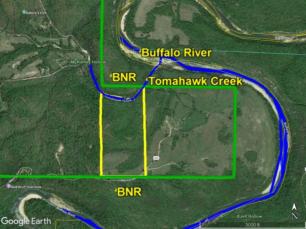 Rare, Rare, Rare. Year round creek, joins Buffalo National River boundary, walk 700 feet from the north edge of your property to Buffalo River at a gravel bar and it has a good view from the top and good building spots. Elec nearby. More info and pics coming soon.